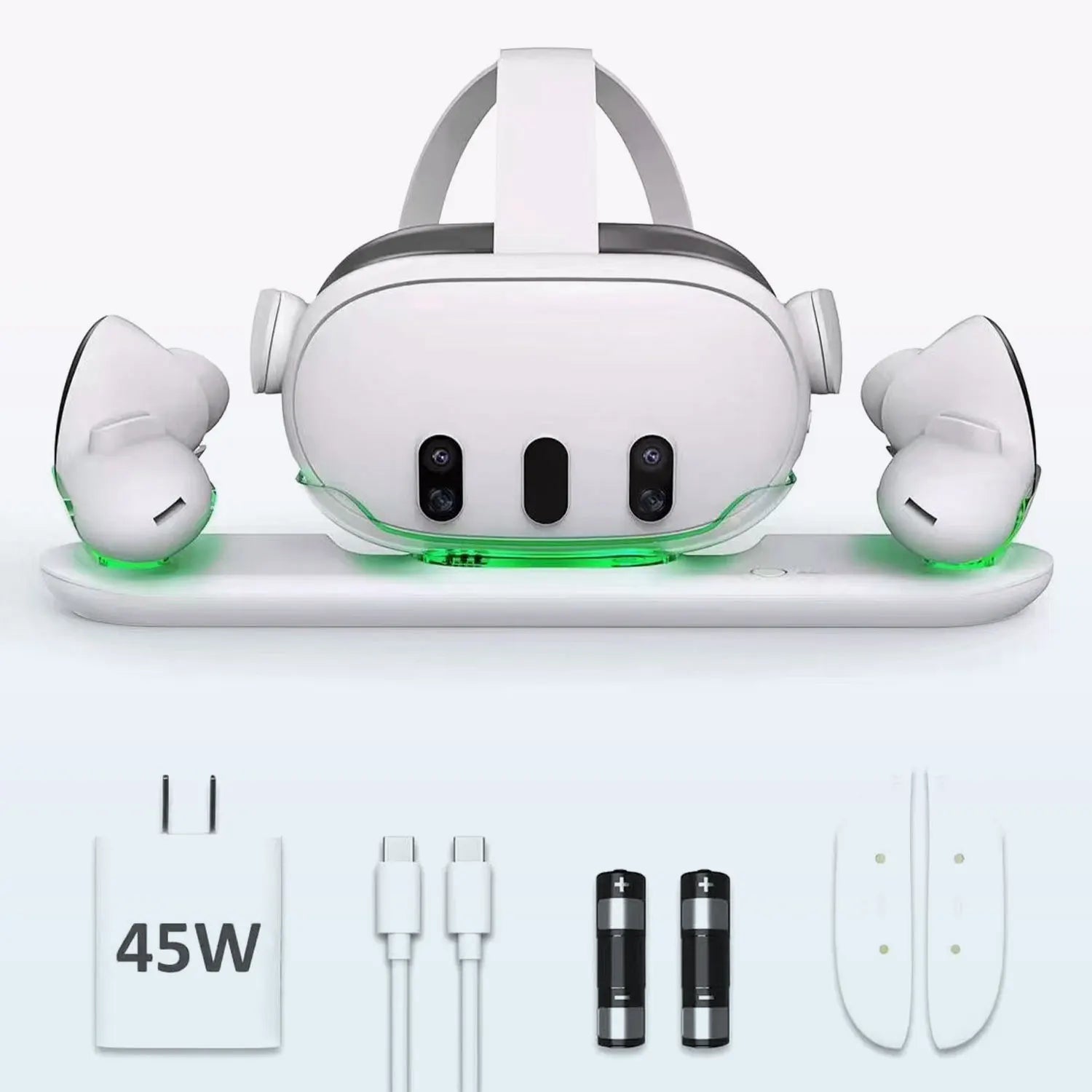 45W Charging Dock for Oculus/Meta Quest 3 VR Headset Controller USB-C LED Indicator Fast Charger with 2 Rechargeable Battery